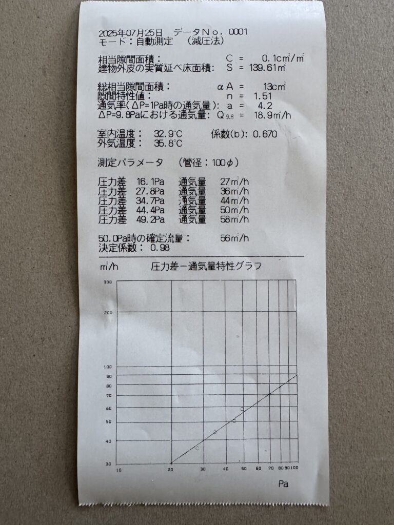 気密測定士さんが、こんな数値は初めて見たと驚かれていました。